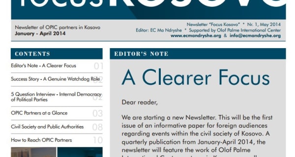 Partnerët e Olof Palme International Center në Kosovë kanë publikuar numrin e parë të newsletter (fletushkës informative) "Focus Kosovo".